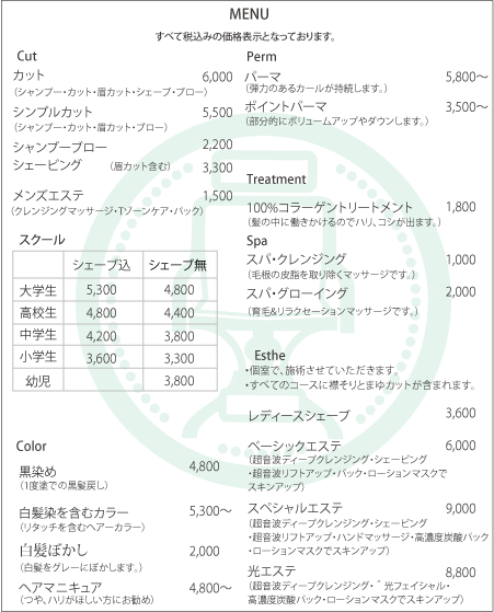 令和7年7月2日よりメニューの一部に関して価格改定を実施させて頂きます。